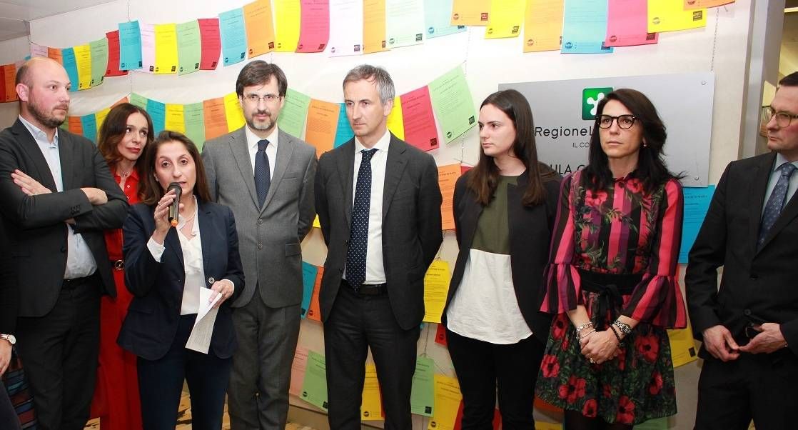 A tagliare il nastro il Presidente del Consiglio regionale, Alessandro Fermi insieme ai componenti dell’Ufficio di Presidenza Francesca Brianza, Giovanni Malanchini, Carlo Borghetti e Dario Violi, e a Letizia Pradella di “Libera contro le mafie”.