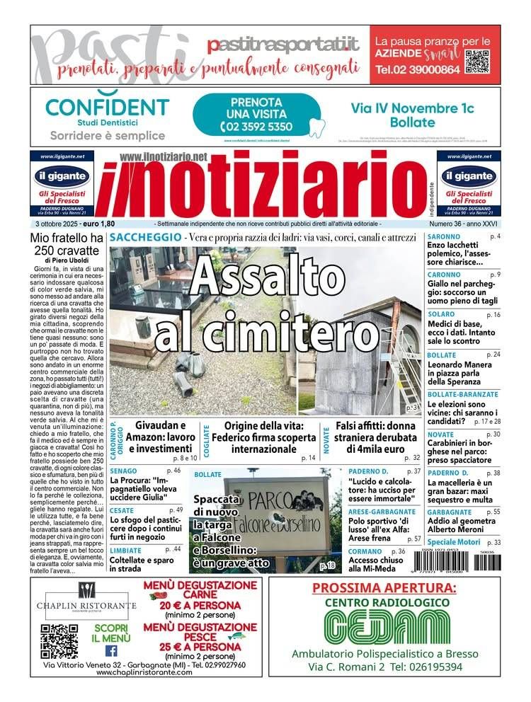La notizia di apertura del Notiziario di questa settimana arriva da Saronno, dove il cimitero è stato preso di mira da un clamoroso saccheggio: rubati vasi, croci, canali e attrezzi, un assalto che ha indignato i cittadini.