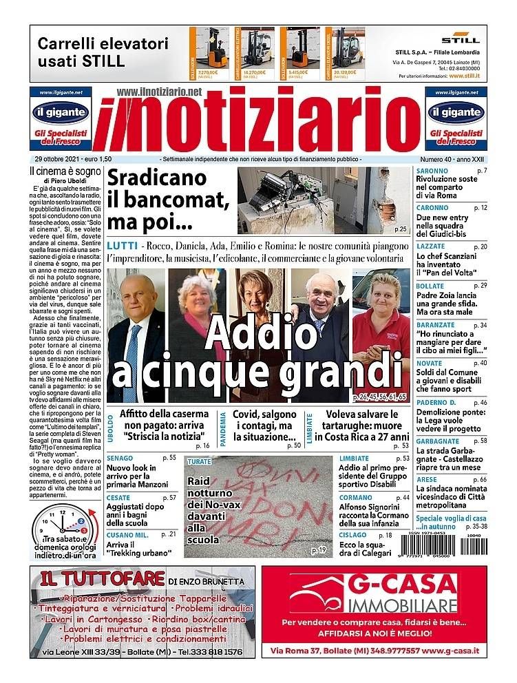 La notizia di apertura di questa edizione del Notiziario riguarda la scomparsa nell’ultima settimana di 5 persone molto importanti per le loro comunità di appartenenza: Rocco, Daniela, Ada, Emilio e Romina lasciano un grande dolore a Bollate, Arese, Paderno Dugnano e Cesate.