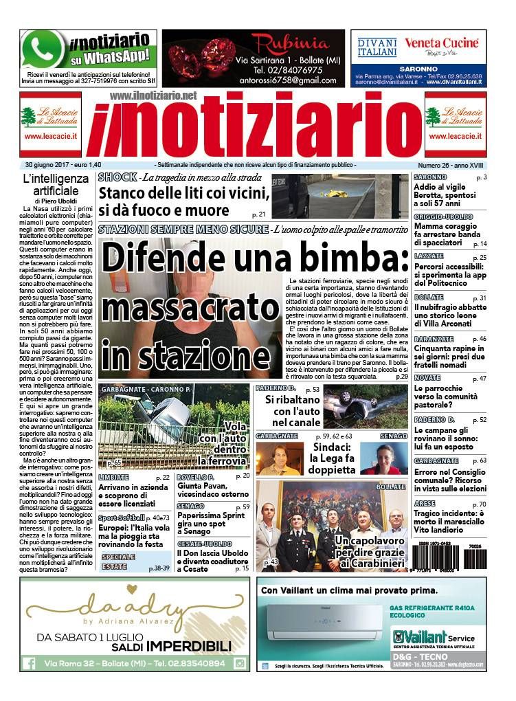 La nuova edizione de “il notiziario”, già nelle edicole di 30 comuni e da oggi anche in altri 10 centri commerciali della zona, si apre questa settimana con la drammatica notizia di un uomo aggredito in stazione per avere difeso una bambina.