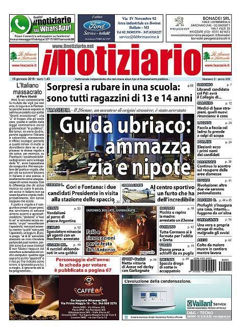 La nuova edizione del Notiziario si apre con un tragico incidente stradale in cui hanno perso la vita zia e nipote, di 44 e 18 anni: erano sull’auto travolta da quella guidata da un uomo risultato ubriaco alla guida, di Novate Milanese