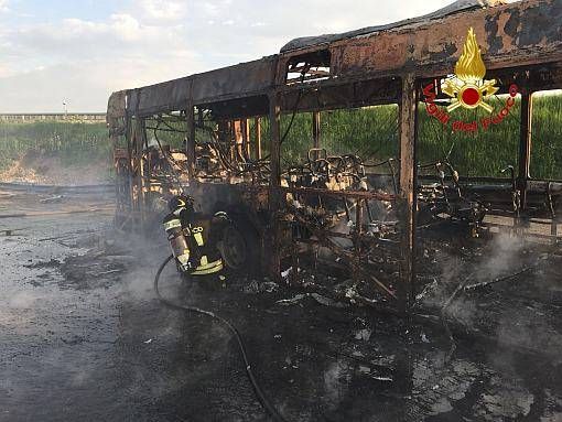 Un autobus utilizzato per i crash test è andato a fuoco nel tardo pomeriggio di oggi a Senago.