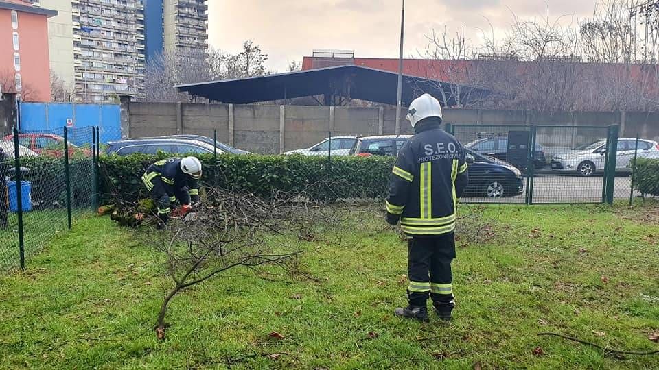 Volontari della Protezione Civile al lavoro nei giorni scorsi a Baranzate. Dopo la grande nevicata del 28 dicembre e le costanti piogge che hanno caratterizzato la prima settimana di questo 2021, sono iniziati i lavori di pulizia delle strade e di rimozione di arbusti e di rami caduti nelle aree verdi e nei parchetti.