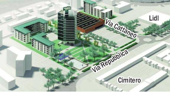 Il primo prevede un palazzo molto alto di 15 piani, al posto dei vecchi 17, e un nuovo supermercato di 2500 metri quadri che sorgerà a fianco del Lidl (probabilmente si tratterà di un Conad).