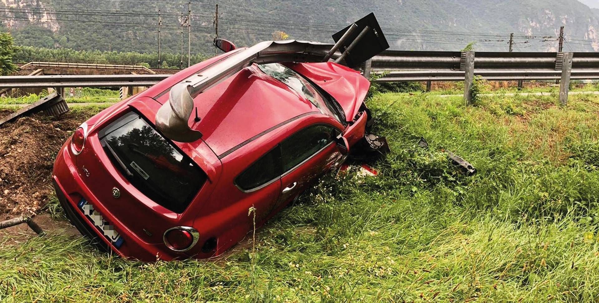 Se solo il guard rail sotto cui l’ auto si è infilata avesse sfondato il parabrezza e si fosse infilato nell’abitacolo, probabilmente adesso saremmo qui a raccontare una storia ben più drammatica. Invece la sbarra di metallo ha spaccato il parabrezza ma per fortuna è schizzata sopra al veicolo, che si è infilato completamente sotto.