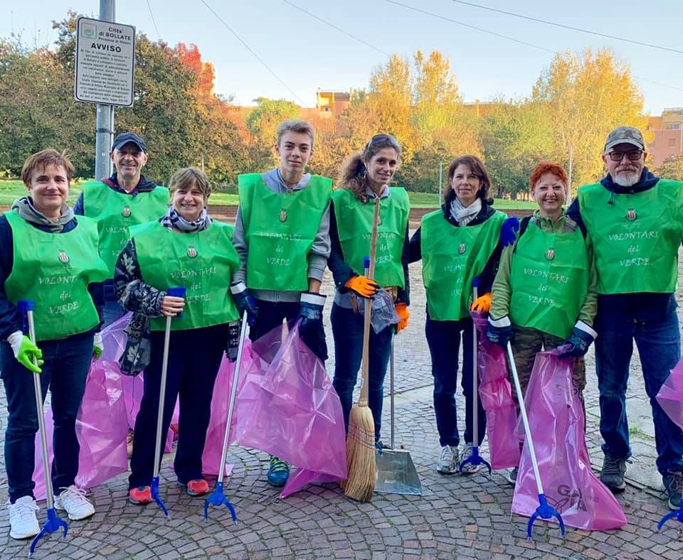 Volontari del verde in azione a Bollate per ripulire strade, parchi e ciclabili dai rifiuti abbandonati da tutti.