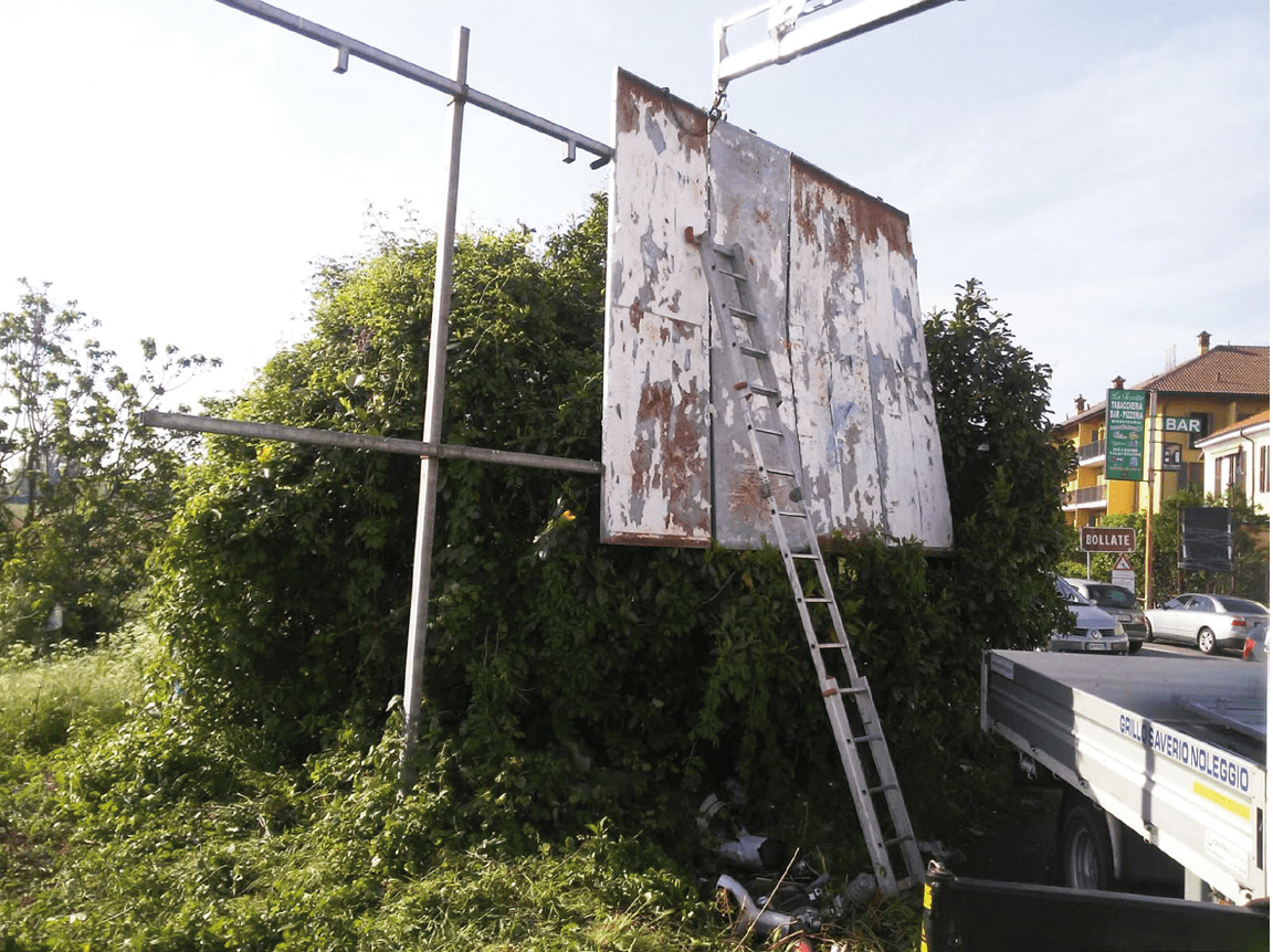 Settimana scorsa a Bollate sono stati rimossi tre cartelloni abusivi. Si trovavano sulla Varesina, in prossimità del confine con Arese.