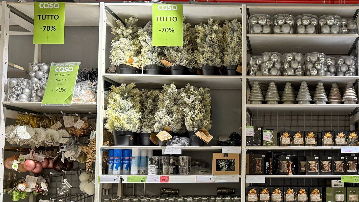 Ci sono palline di ogni dimensione. Ma anche luminarie, addobbi di ogni genere e perfino un abete da oltre un metro e mezzo con il cartello “venduto”. Chi passa dal negozio Casa, al piano terra della galleria de Il Centro di Arese rimane per un attimo sbigottito. C’è chi strabuzza gli occhi, ma anche chi si interessa subito di quella merce e soprattutto dei cartelli che annunciano fino al 70% di sconto. Il via vai è continuo da parte di chi è in città in questa torrida settimana di Ferragosto. Così se qualcuno va al centro commerciale per passare qualche ora al fresco dell’aria condizionata, può tornare a casa con addobbi di Natale come se fossimo già nel periodo natalizio. Il motivo? La chiusura del negozio.