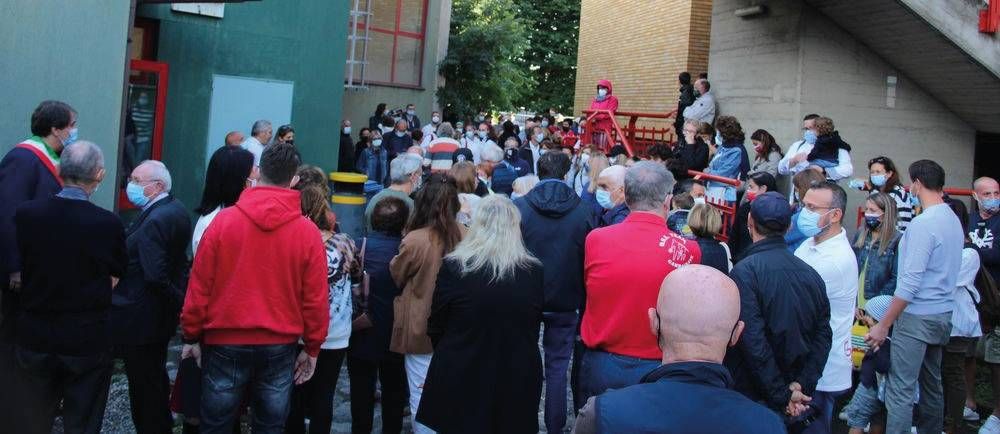 Don Claudio ha ricordato i momenti in cui Alessio veniva in oratorio, sottolineandone la solarità, l’allegria e la voglia di vivere, dicendo che persone così sono un vero tesoro. Da ultima ha parlato la moglie Claudia, anch’essa visibilmente emozionata: ha ringraziato tutti sottolineando come fosse importante questa intitolazione, perché quella palestra era la sua seconda casa ed è bello anche per il figlio Liam che questo luogo sia dedicato a lui.