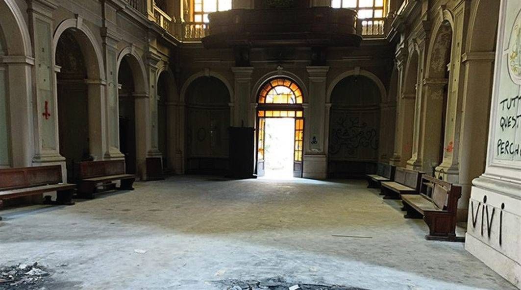 Al suo interno, in particolare, sta deperendo la bellissima chiesa dedicata a San Carlo, una sorta di Basilica di San Pietro in miniatura, che è stata lasciata andare (con tutti i suoi arredi) insieme all’ex ospedale e che nel tempo ha visto vandali incendiare e spaccare le panche, demolire a martellate l’altare, spaccare il tabernacolo, saccheggiare l’organo a canne, scrivere parole volgari e blasfeme sui muri della chiesa, spaccare le vetrate artistiche. Ne abbiamo parlato qui.