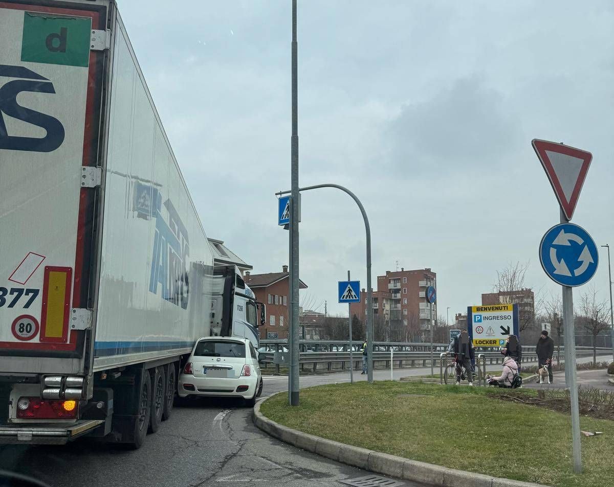 Al momento non risultano feriti, perché Areu non ha inviato sul posto mezzi di soccorso, ma risultano invece grossi problemi di scorrimento del traffico a causa della presenza dell’autoarticolato su parte della rotatoria, verso l’uscita per via I maggio.