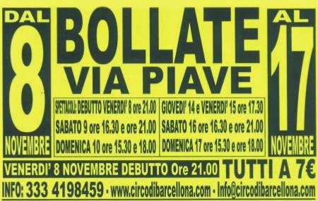 La scorsa settimana in molti negozi di bollate e dintorni sono comparsi dei manifesti in cui si annunciava il ritorno di un circo a Bollate, dopo tanti anni. Si tratta del “Circo di Barcellona”, uno dei 10 più importanti d'Italia. Il primo spettacolo doveva essere venerdì 8 novembre in un'area di via Piave tra l'ospedale e la casa per anziani. Diverse persone si sono recate lì quella sera ma non hanno trovato nulla, nemmeno il tendone da circo. Cosa è successo? IL problema centrale è nato dalla Pgt: l'area adibita inizialmente per lo spettacolo, cioè a Cassina Nuova, aveva un cavo dell'alta tensione che impediva al tendone di venir montato. A quel punto ha cercato di ottenere l'area di via Piave appartenente all'azienda ospedaliera, ma l'area non è stata concessa. Alla fine della vicenda, il Circo di Barcellona se ne va da Bollate con le ossa rotte: 43 persone non hanno potuto lavorare per due settimane, inoltre si sono presi ben tre verbali dai vigili: uno per affissione abusiva, uno per l’occupazione senza permesso dell’area di via Piave con alcune strutture e uno legato all’ordinanza di sgombero a cui non hanno ottemperato subito.