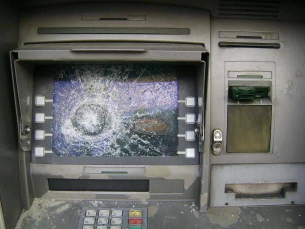 Nella foto lo schermo del Postamat distrutto.