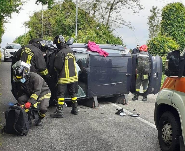 Un’auto si è ribaltata questa mattina a Garbagnate in via Monte nero, dopo avere urtato un trattorino a bordo strada.