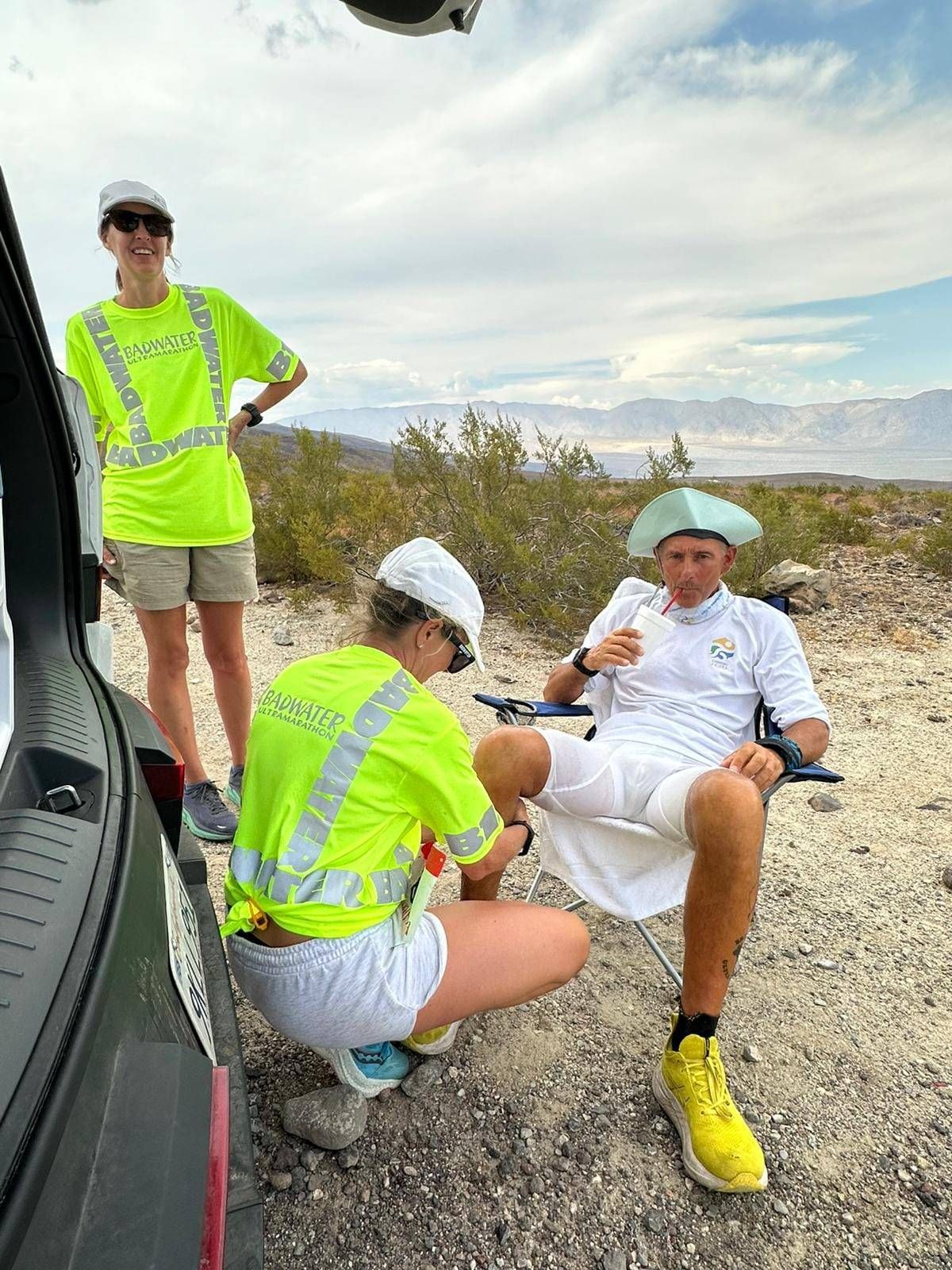 Ma Monegato è uno dei 74 straordinari atleti da tutto il mondo che sono riusciti a portare a termine l’edizione 2024 di questa sfida estrema. Iscritti in 103, partiti in 97, 23 hanno dovuto abbandonare durante il tragitto. Ma Pier è arrivato fino in fondo, grazie ad una eccezionale forza di volontà e al supporto tecnico perfetto del suo team tutto al femminile: la moglie Marisa Re (che solo per passargli l’acqua lo ha affiancato per quasi una settantina di km), la figlia Martina e poi Jennifer, un’amica americana del Tennessee, che lo hanno seguito passo dopo passo a bordo del fuoristrada per garantirgli assistenza.