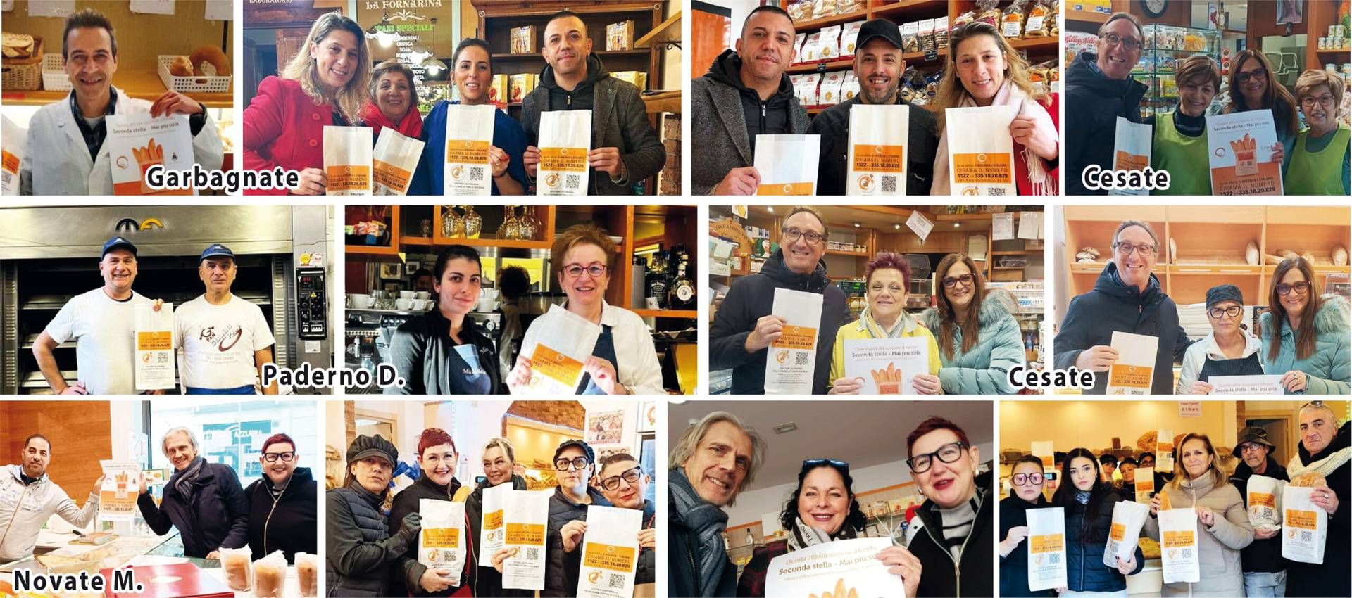 Sessanta i panettieri della zona di Bollate, Garbagnate e di Paderno che hanno aderito con entusiasmo alla campagna, promossa da Confcommercio Bollate e dalla delegazione di Paderno Dugnano, partner attivi che hanno distribuito i sacchetti per l’intera settimana, in modo da poterli dare con il pane da sabato 25 novembre. Il progetto è stato finanziato da Fondazione Comunitaria Nord Milano.
