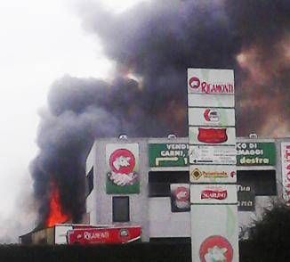 E’ lei che porta sfortuna, oppure… ? La risposta cercate di darla alla fine dell’articolo, dopo aver letto, in sintesi, la curiosa vicenda che troverete narrata ampiamente sul Notiziario in edicola da domani, venerdì 6 marzo. In sintesi: una giovane donna di Bollate va a fare la spesa in un grosso negozio della zona ma, mentre è dentro, sente puzza di bruciato. Vengono fatti correre tutti fuori, perché in un capannone si è sviluppato un pauroso incendio (si veda la foto).