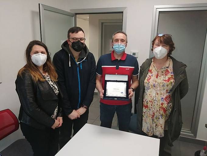 E durante la consegna della targa, che Luca ha voluto fare di persona insieme alla presidente dell’associazione ed a mamma Silvia sono arrivati anche colleghi e colleghe. Nei momenti iniziali hanno condiviso parte del lavoro e della formazione con lui, si sono perfino documentati, per capire come meglio relazionarsi. Un lavoro di squadra in cui la qualità umana ed un ottimo capitano hanno contribuito a fare di Luca una risorsa dell’azienda al pari con gli altri.