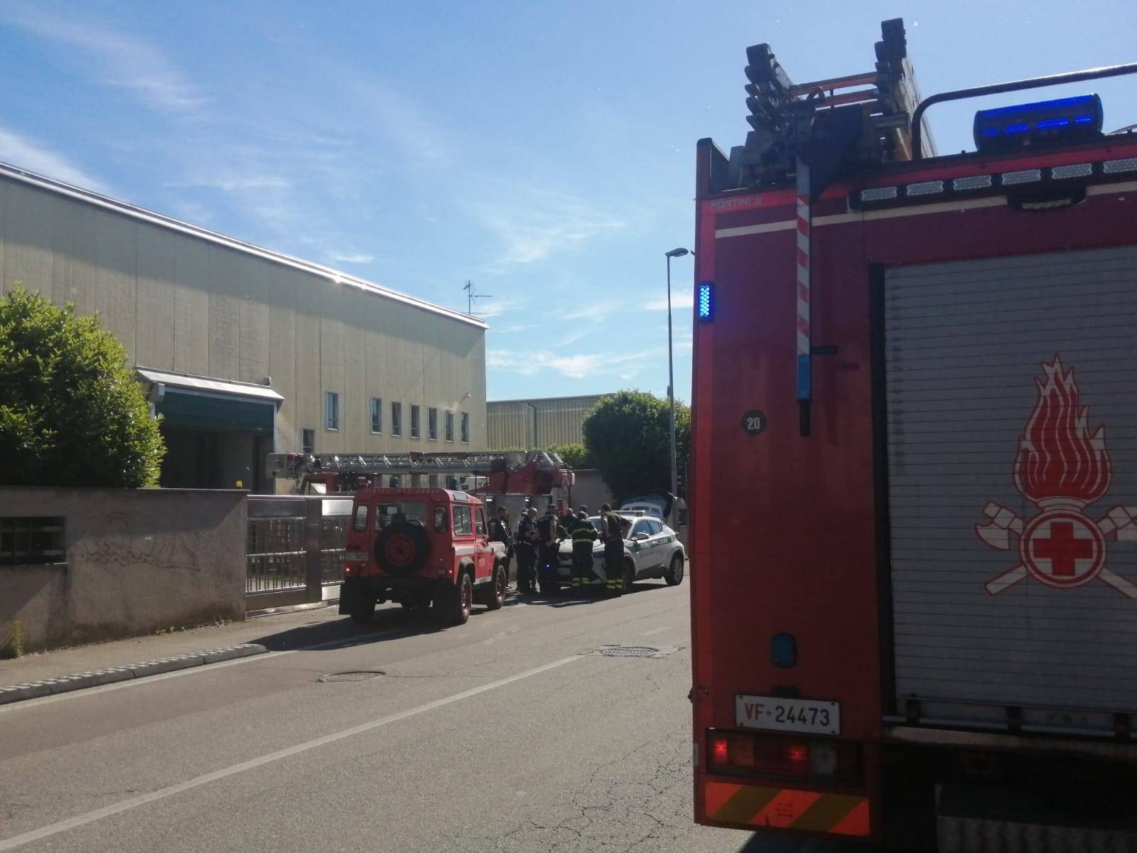 Vigili del fuoco in azione per una fabbrica in fiamme. È accaduto a Senago, in un forno per verniciature in viale Europa.