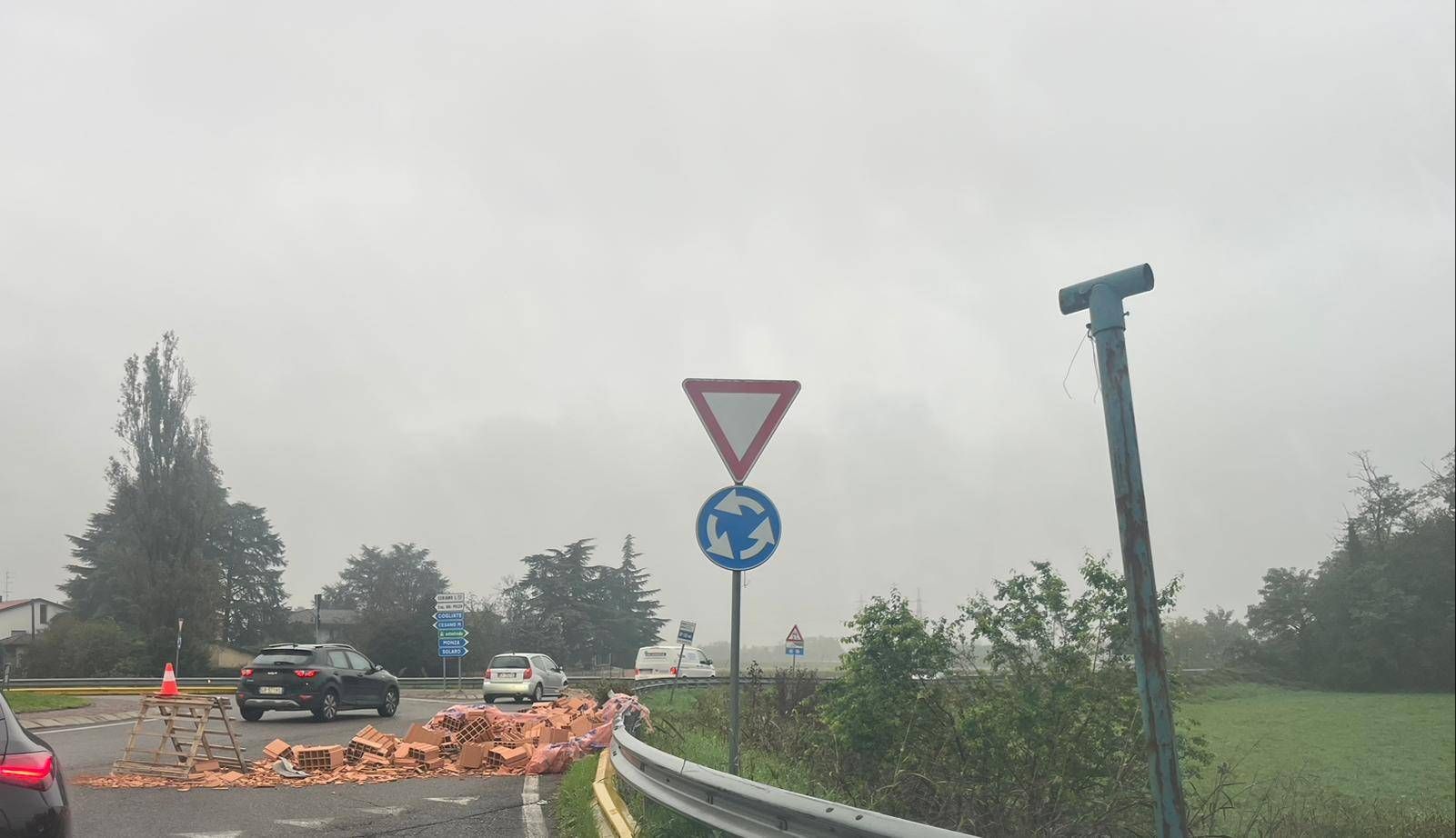 Mattoni rovesciati sulla strada tra Saronno e Ceriano si è rischiato un grave incidente
