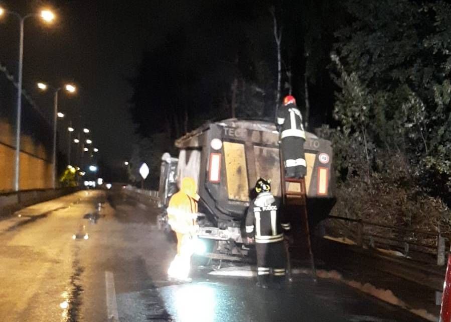Disastroso incendio di un grosso camion in marcia carico di catrame questa notte a Ceriano Laghetto. Poco dopo l’una di notte un autoarticolato carico di catrame caldo ha preso fuoco in via Milano, frazione Villaggio Brollo di Ceriano Laghetto, mentre percorreva la strada del sottopassaggio alla linea ferroviaria Saronno-Seregno.