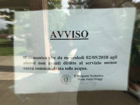 Purtroppo, ancora negli ultimi giorni abbiamo ricevuto a scuola telefonate di genitori che ci dicevano ma tanto voi non potete lasciare i bambini senza mangiare. Questo è un atteggiamento provocatorio che rappresenta una vera rinuncia della responsabilità genitoriale. Anche per questo motivo mi sono sentita di esporre quel cartello che vuole essere una risposta forte a questo atteggiamento di disinteresse. Inoltre -continua la dirigente scolastica- va tenuto presente che la scuola non può in nessun caso provvedere alla somministrazione di alimenti ai bambini, perché non conosce ad esempio le allergie, le intolleranze, le diete religiose: questi aspetti sono tutti in capo al servizio di ristorazione e non vengono gestiti dalla scuola”. I pagamenti effettuati oggi saranno subito registrati e la scuola mercoledì avrà gli elenchi aggiornatissimi, ha spiegato la dirigente. Chi non è in regola, dovrà venire a prendersi i bambini.