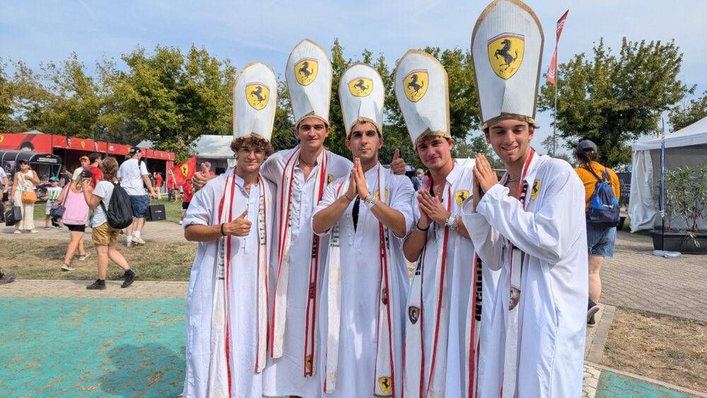 All’interno dell’Autodromo cominciano a comparire personaggi curiosi, come il quintetto di Papi made in Ferrari, cinque giovanissimi da Castelleone (Cremona) mentre nel paddock cresce l’attesa per i vip: già oggi avvistati Alessandro Borghese, Jean Alesi e Giacomo Agostini: tanti arriveranno domani e tra loro già annunciati gli atleti italiani che hanno vinto medaglie alle Olimpiadi di Parigi,