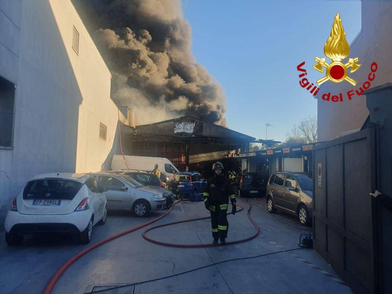 Incendio in una autofficina a Lissone in Via Canova. Sul posto sono intervenute le autopompe di Desio, Monza, Seregno e Lissone, le autobotti dal distaccamento di Carate Bovisio e una in supporto dal comando di Milano, un’autoscala e il modulo di supporto della centrale di Monza. Richiesto anche il Carro schiuma al comando di Milano e al distaccamento di Lazzate.