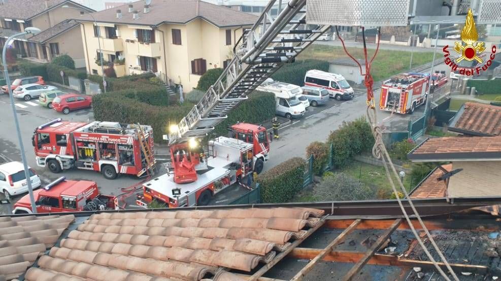 L’incendio è partito dalla canna fumaria e ha interessato circa 30 metri quadri di tetto. Sul posto sono intervenute rapidamente diverse squadre di Vigili del fuoco, partite da Lazzate, Saronno, Desio e Carate Brianza, oltre ad un’ambulanza del 118.