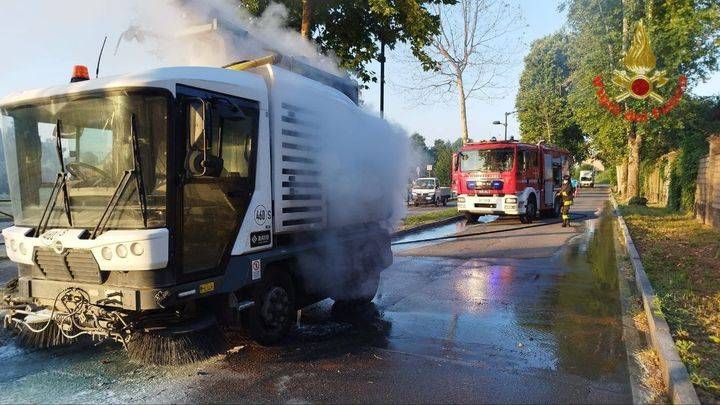 Squadre di Vigili del fuoco del comando di Monza e Brianza, sono intervenute per un incendio che ha coinvolto la spazzatrice.