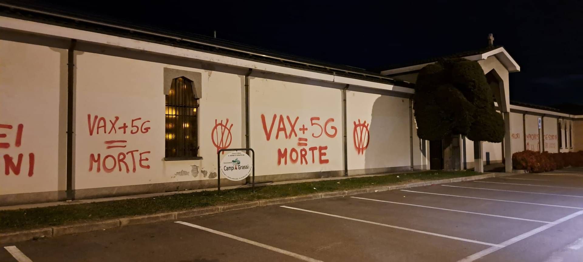 Scritte No Vax e contro il 5g sul cimitero di Misinto