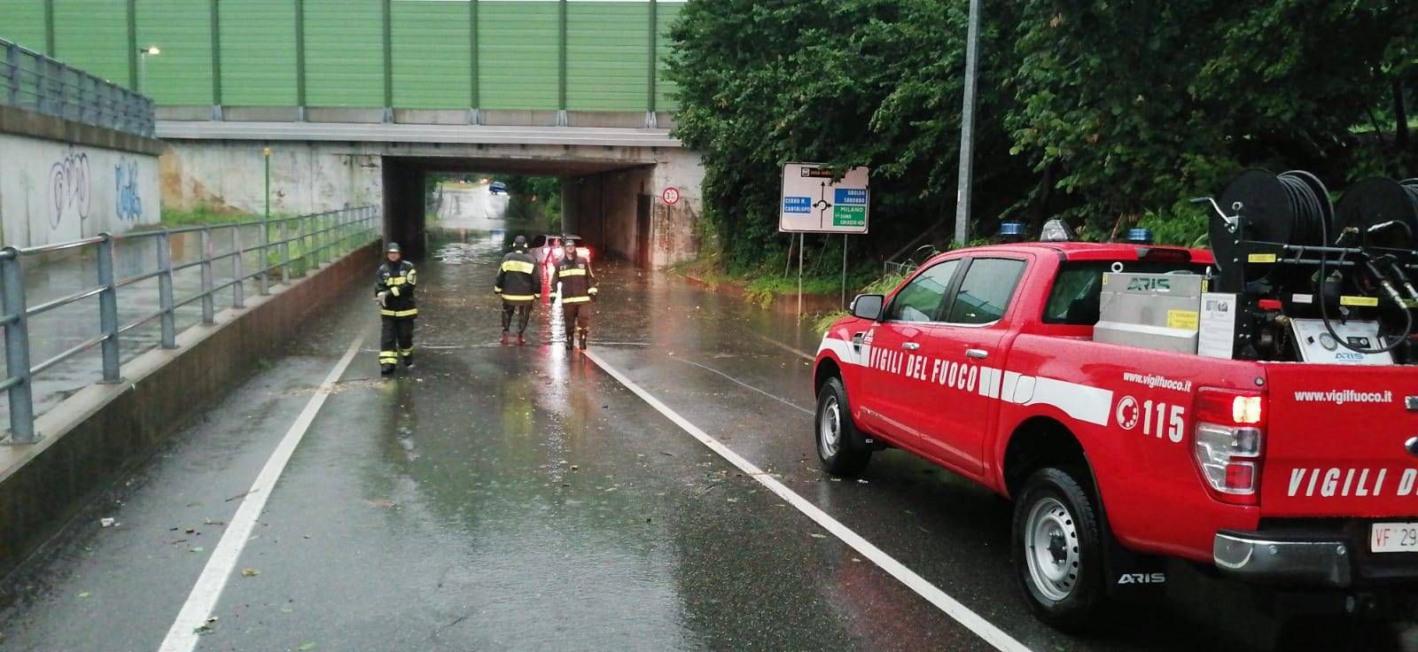 Tra le situazioni più a rischio, a Ceriano Laghetto, l’allagamento del sottopasso di via Milano, al Villaggio Brollo, dove sono rimasti intrappolati prima un furgone, subito rimosso, poi un’automobile, rimasta all’interno. Sul posto si sono portati i Vigili del fuoco di Lazzate oltre ai carabinieri.