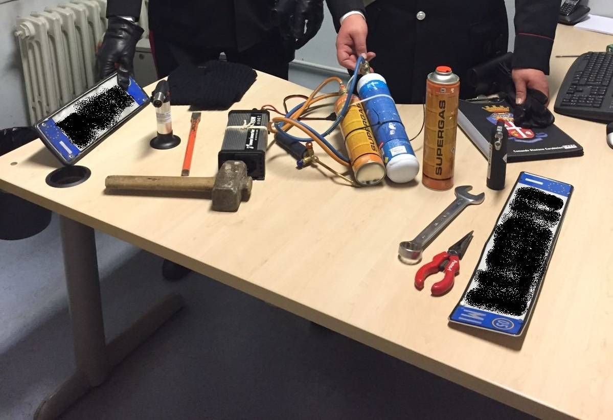 Dalla perquisizione della vettura è emerso avesse tre bombolette di gas propano, necessarie per far esplodere il cambia-monete, nonché diversi arnesi da scasso.