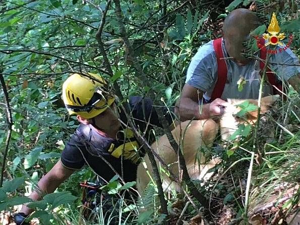 Gli operatori specializzati dei Vigili del fuoco, con tecniche alpinistiche, hanno recuperato le due persone e l’animale, che non hanno riportato conseguenze significative, oltre comprensibilmente ad un grande spavento.