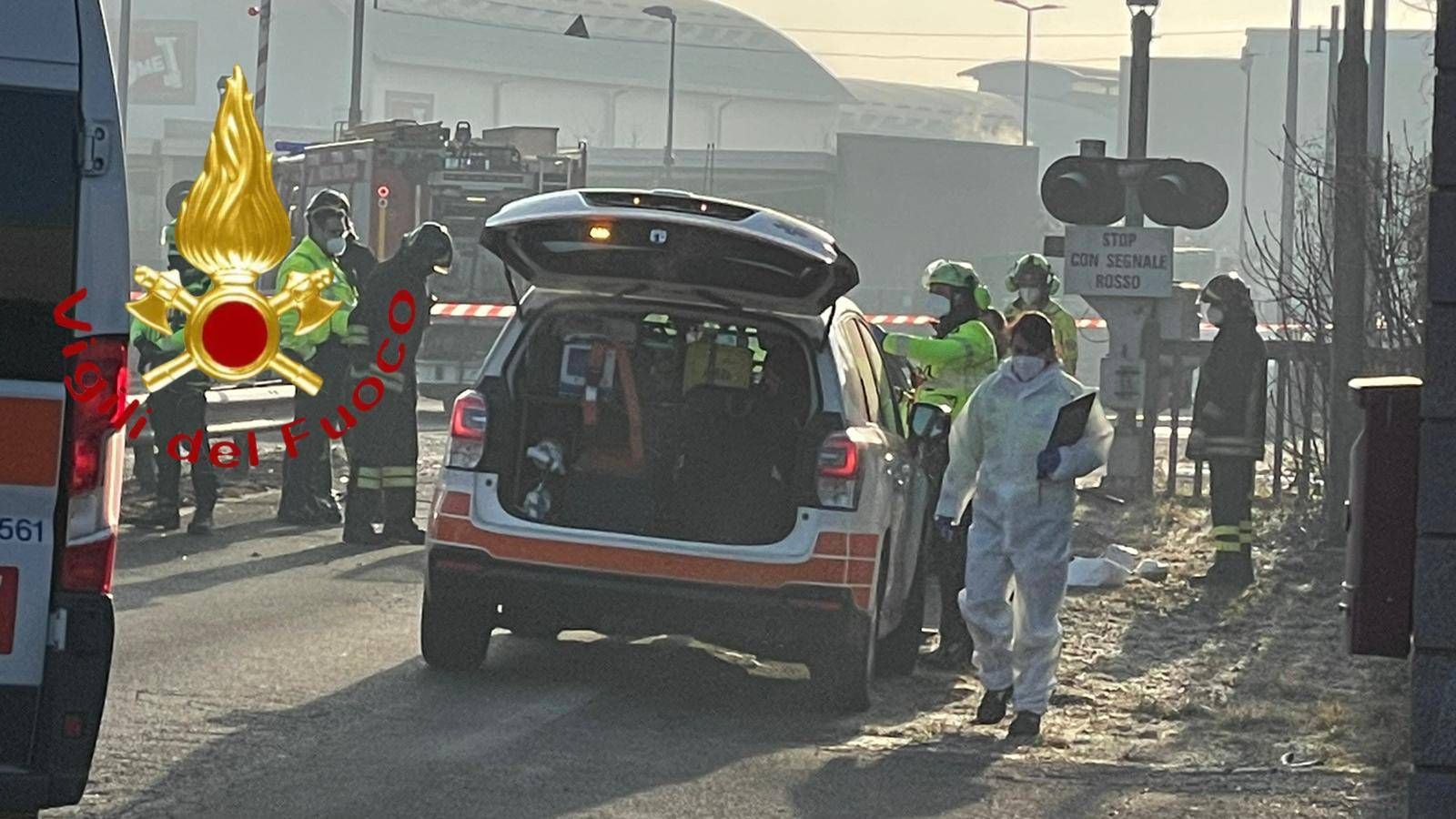 Sul posto si sono portate rapidamente un’ambulanza, l’auto medica, l’elicottero del 118, squadre di Vigili del fuoco e pattuglie di carabinieri. L’impatto è stato molto violento, ha distrutto la parte anteriore dell’auto e danneggiato seriamente anche la motrice del treno.