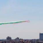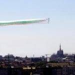 La pattuglia acrobatica delle Frecce Tricolori è passata questa mattina in formazione sul cielo di Milano, facendo tappa anche a Codogno, comune simbolo per l’inizio dell’emergenza Covid 19.
