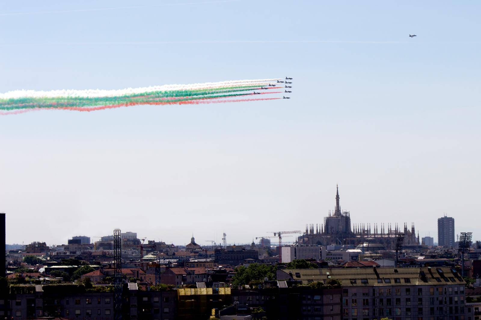 Più di qualcuno stamattina anche nella nostra zona ha potuto osservare il movimento degli aerei acrobatici, che si sono mossi a tratti in maniera separata, per congiungersi in formazione sopra il cielo di Milano.