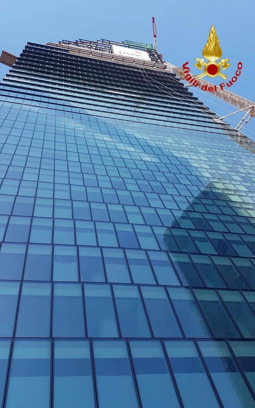 Una mini-gru è precipitata dal 29esimo piano nell’area di cantiere di City Life a Milano.