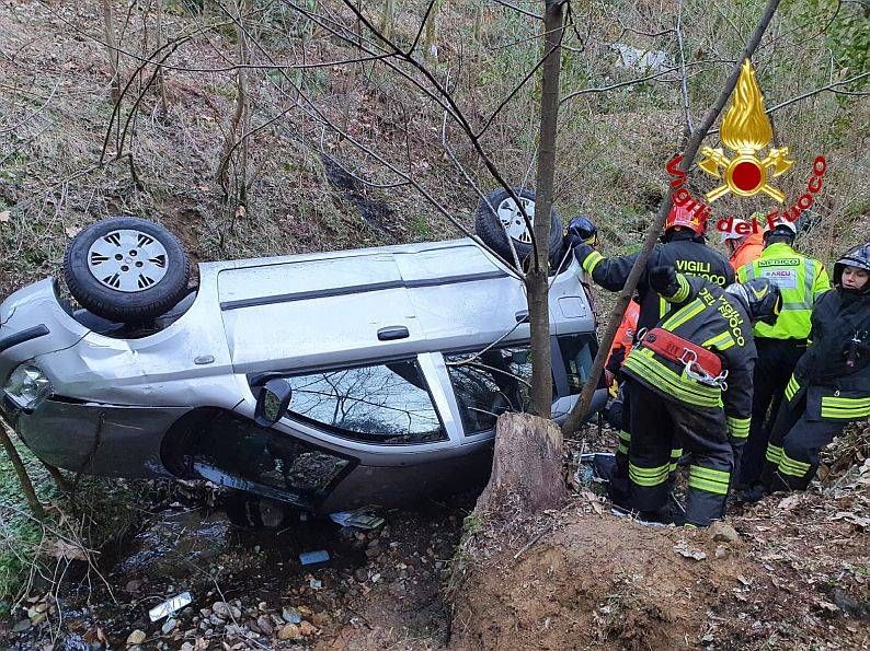 I vigili del fuoco hanno raggiunto a piedi il veicolo precipitato, estratto i due occupanti dall’abitacolo e collaborato con il personale sanitario per il recupero.
