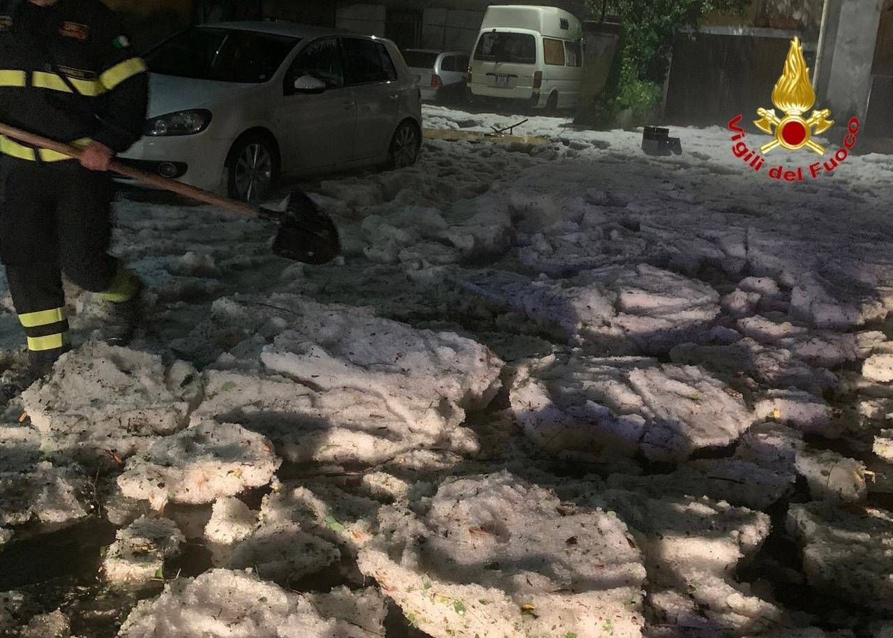 Strade coperte di bianco ma non è neve: fa impressione la quantità di grandine caduta nella notte nella zona della Valle Olona, sopra Tradate. Le immagini diffuse dai Vigili del fuoco del comando provinciale di Varese si riferiscono a Gornate Olona, comune a nord di Tradate, meno di 15 chilometri da Mozzate e Cislago, dove prima dell’alba si è abbattuta una grandinata violentissima.