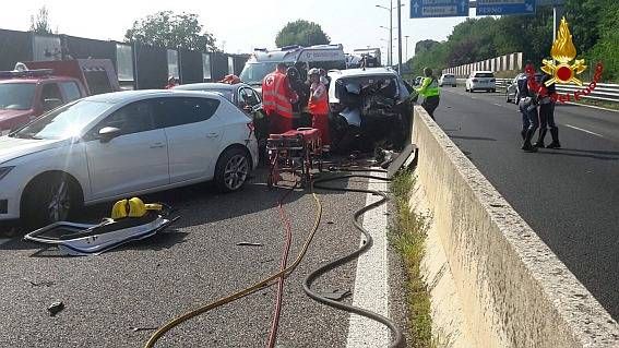 L’allarme è scattato poco dopo le 15 in seguito allo scontro tra 3 vetture.