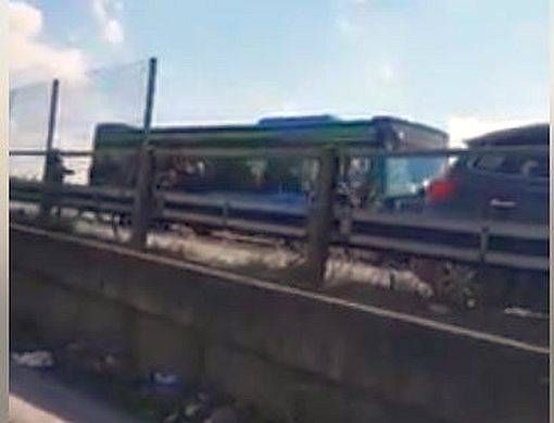 Il conducente dell’autobus ha forzato il posto di blocco, ha zigzagato in mezzo al traffico trascinando per decine di metri una macchina dei carabinieri.