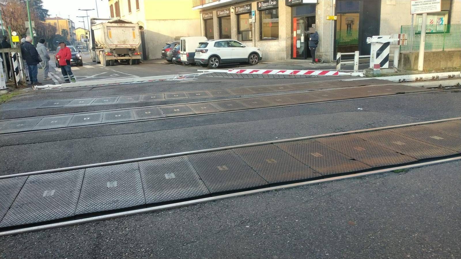 Un camion ha abbattuto le barriere del passaggio a livello a Palazzolo di Paderno Dugnano, circolazione dei treni modificata lungo la linea Milano-Seveso.