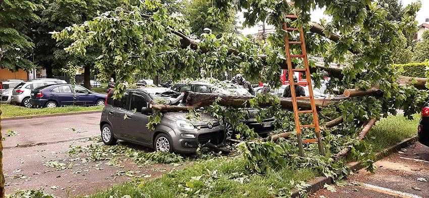 L’allarme è scattato poco dopo le 17 di martedì 11 maggio, quando un pesante albero è precipitato sulle auto parcheggiate, danneggiandole irreparabilmente,