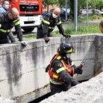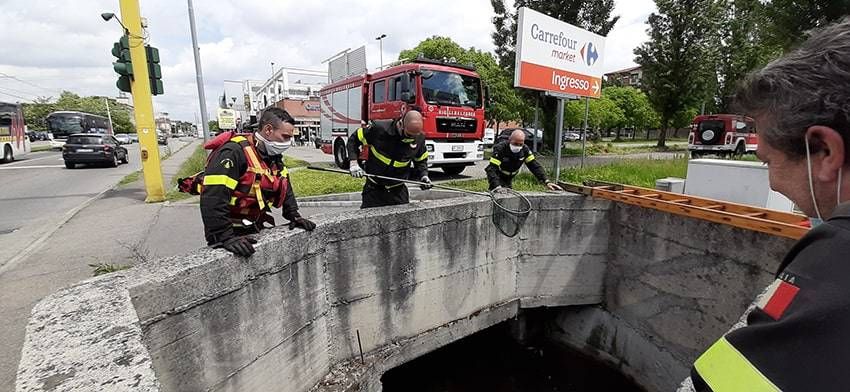 Ci sono volute quasi tre ore per salvare tutti gli anatroccoli dalla forte corrente del canaletto sotterraneo. I pompieri di Desio, giunti in posto con due mezzi, si sono subito messi all’opera per salvare gli anatroccoli. Un vigile del fuoco, dopo aver indossato il giubbotto di salvataggio e gli stivaloni “da pescatore” ha raggiunto il fondo del canale, tentando di recuperarle, ma alla sua vista gli anatroccoli si sono ritratti nel canale sotterraneo, impedendo ai pompieri di raggiungerli.