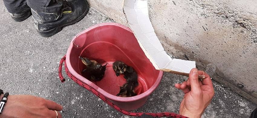 Dopo quasi due ore di estenuante attesa, i pompieri appostati in un’apertura del canale, muniti di retino, hanno salvato uno ad uno i piccoli anatroccoli, stremati dalla forte corrente. Dopo che i pompieri avevano salvato parte dei piccoli, la mamma si era allontanata, nascondendosi nelle vicinanze.