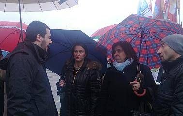 Matteo Salvini incontra le rappresentanti sindacali di Electrolux a SolaroQualche cartello di protesta, rivolto in particolare al governatore della Lombardia, Roberto Maroni, ha accolto l'arrivo, questo pomeriggio all'Electrolux di Solaro, di Matteo Salvini, segretario federale della Lega Nord ed europarlamentare. Davanti all'ingresso principale della fabbrica di lavastoviglie di Corso Europa si sono radunati, sotto la pioggia incessante, una cinquantina di lavoratori, che a Maroni contestavano quello che ritengono un atteggiamento troppo "distante", come governatore della Lombardia, insieme ad un gruppo di sostenitori delle sezioni leghiste di Solaro e comuni limitrofi. Presente anche il sindaco di Solaro, Renzo Moretti e quello di Ceriano Laghetto, Dante Cattaneo. “Sono qui per ascoltarvi e per raccogliere le vostre proposte sulle quali prometto di rompere le p… a tutti” -ha detto Salvini, incontrando i lavoratori. Ad inquadrare la situazione ci hanno pensato le rappresentanti sindacali dell'azienda, Raffaella Lapenna, Rosa Cuomo, Angela Laprocina. “Siamo allo stremo, i lavoratori non sono più in grado di sopportare tagli sul salario. Piuttosto dev'essere il Governo a tirare fuori i soldi, sottoforma di sgravi sul costo del lavoro”. Una linea condivisa da Salvini: “Bisogna trovare i soldi per risolvere questa emergenza. I soldi li può mettere solo il Governo. Purtroppo il rischio è che questo tipo di situazioni si ripetano sempre più spesso perchè sono il frutto di come è stata concepita questa Europa. O la cambiamo in fretta, o sarà sempre peggio”. Intanto i lavoratori hanno manifestato il loro disappunto per l'annunciato rinvio del nuovo incontro già programmato a Roma per il 17. “Continueremo con il blocco delle merci in uscita e con gli scioperi all'interno dell'azienda” -hanno ribadito gli operai dell'Electrolux.