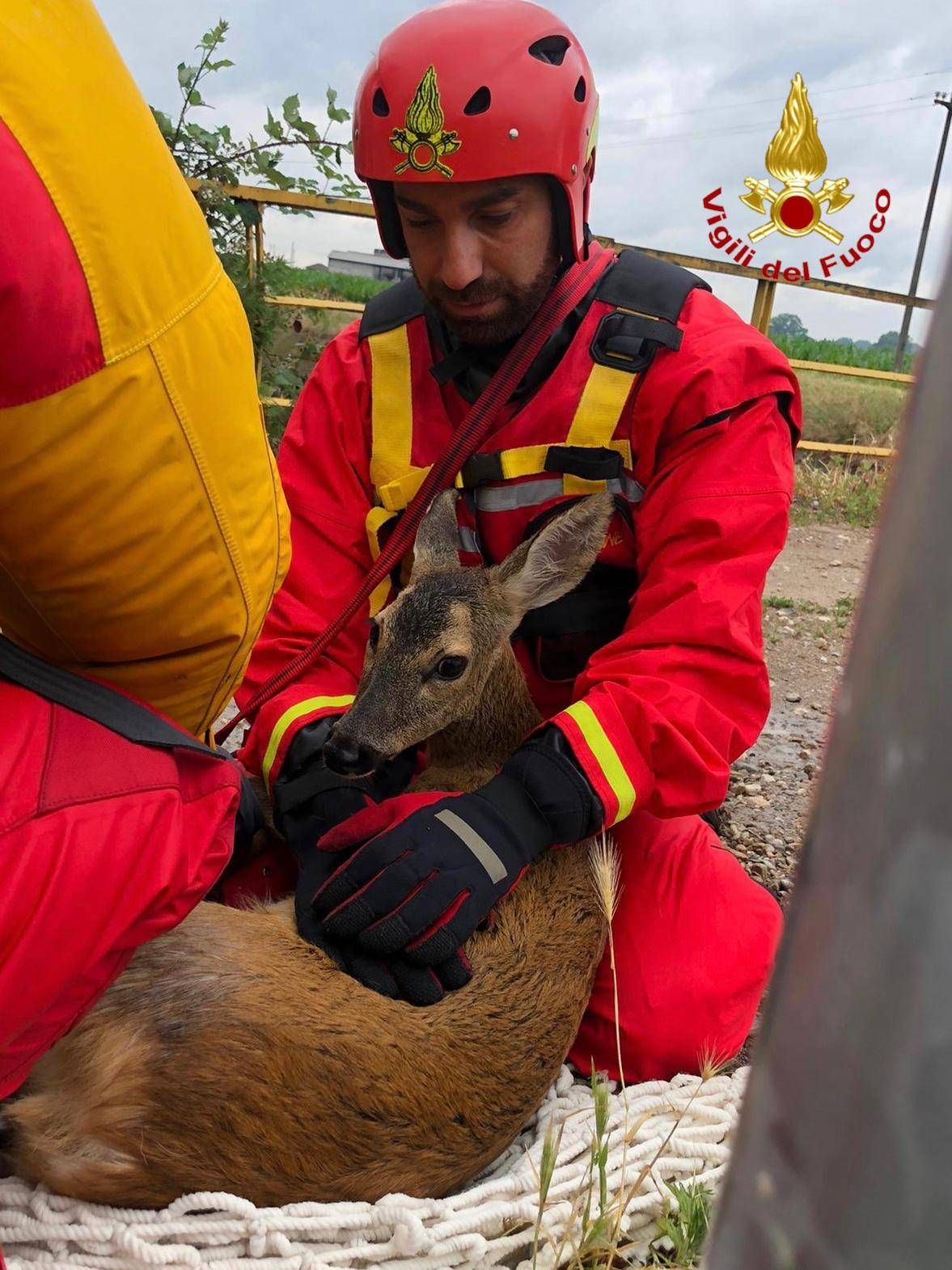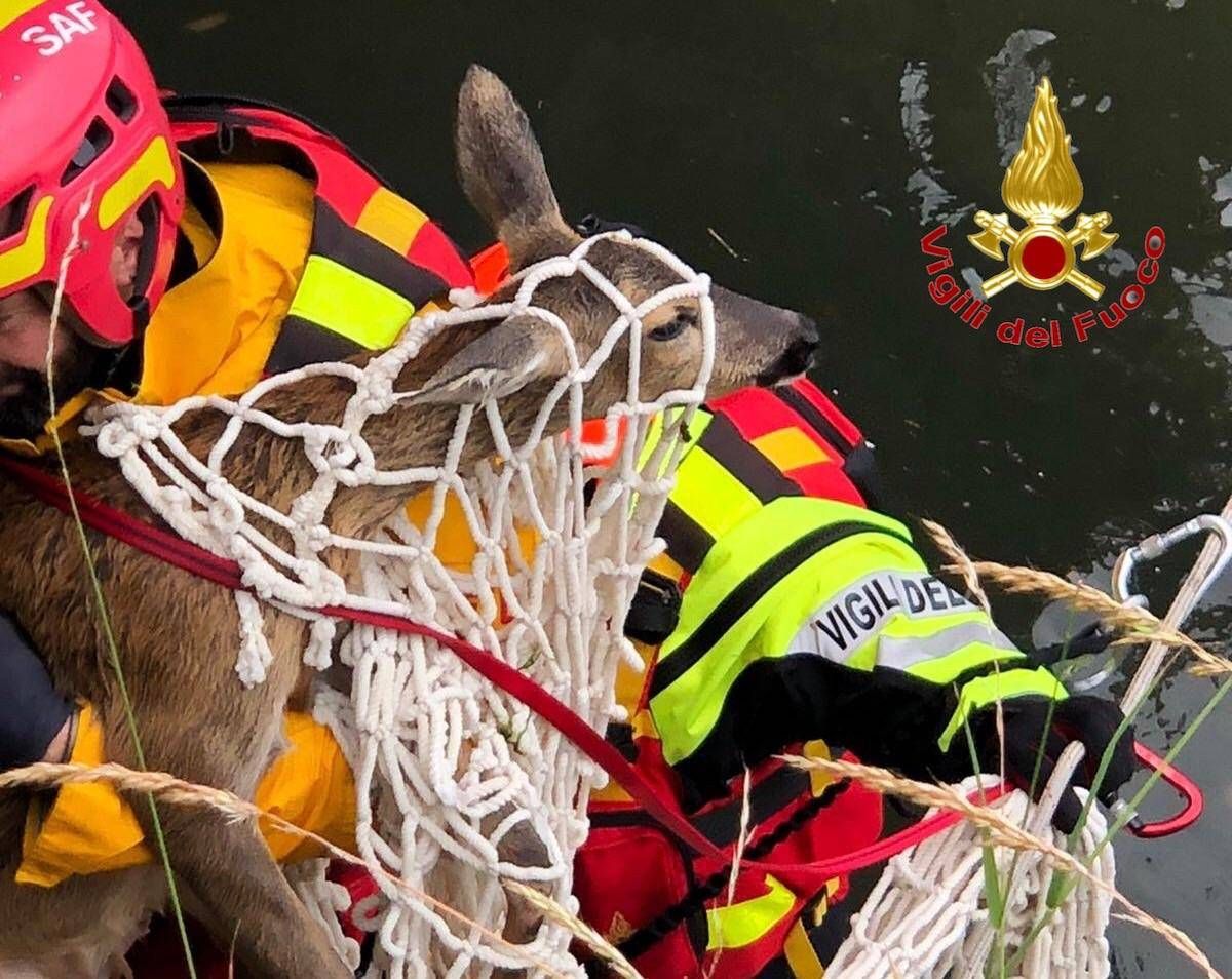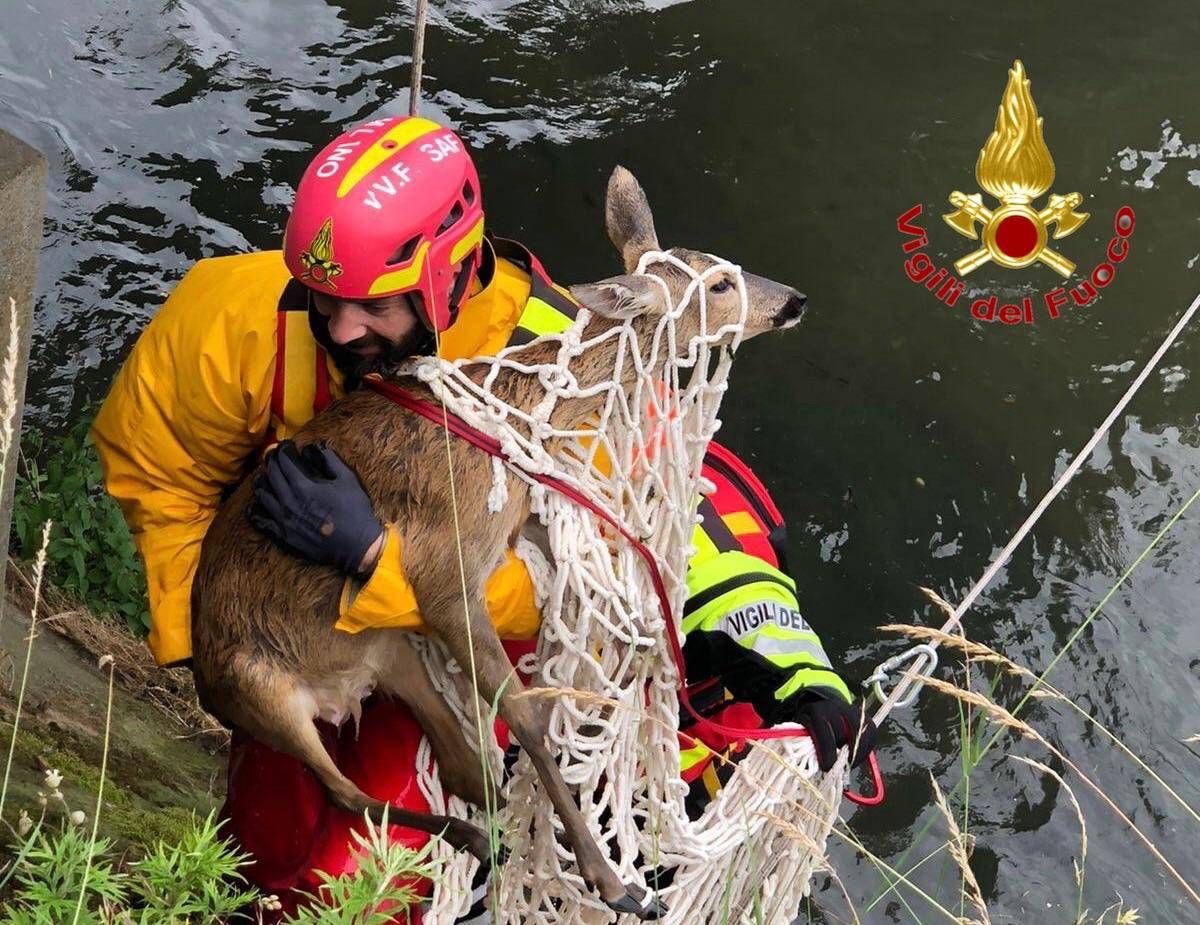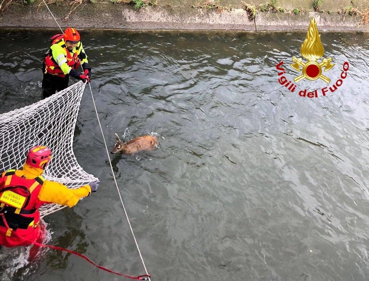 I vigili del fuoco del comando provinciale di Milano sono intervenuti questa mattina ad Abbiategrasso per il recupero di capriolo finito nel canale scolmatore.