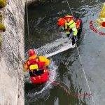 L’intervento è stato effettuato dalla squadra degli specialisti del nucleo Speleo fluviale dei Vigili del fuoco. Sul posto, in strada Prabalò, presenti due mezzi dei pompieri.