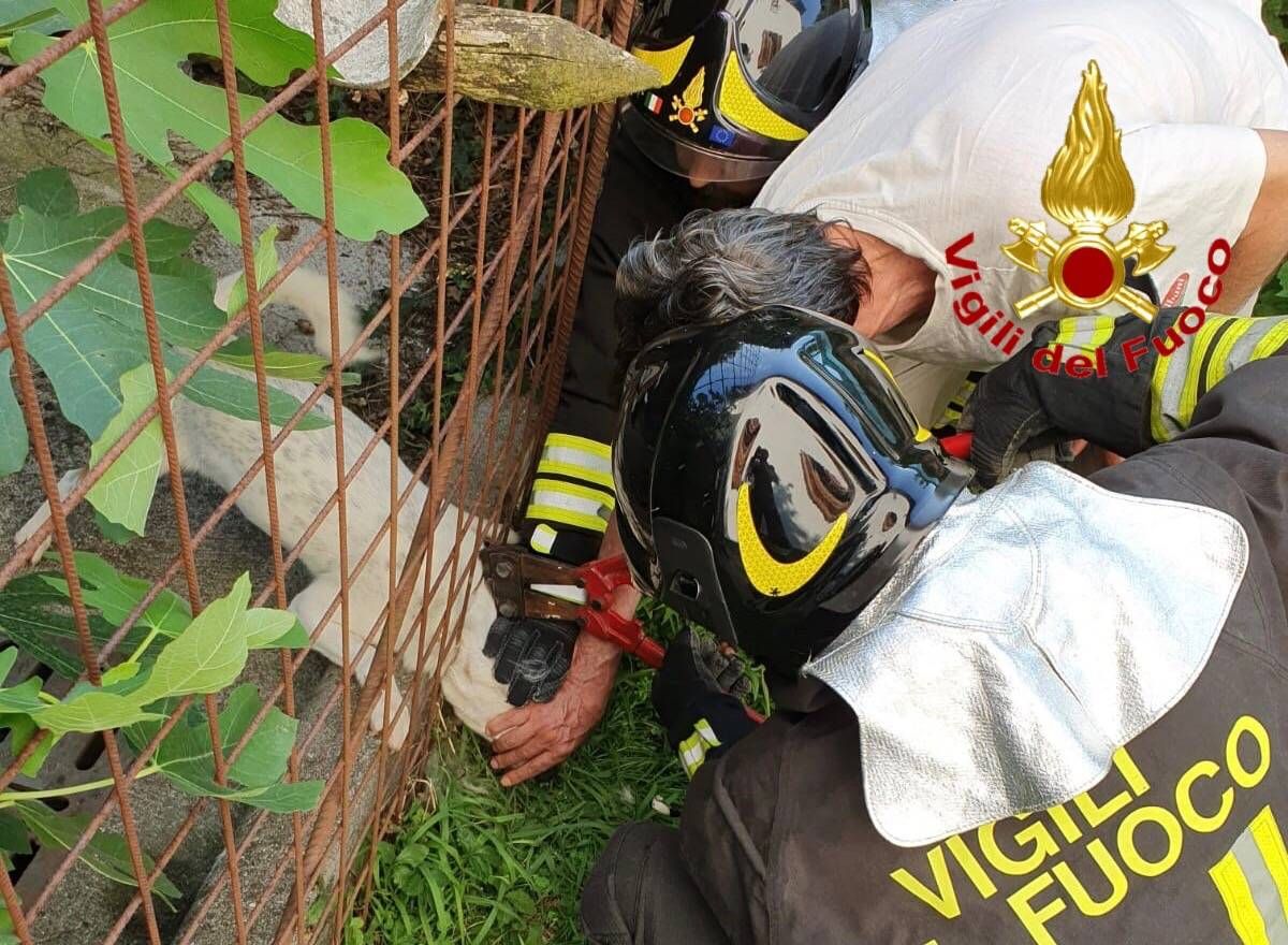 I vigili del fuoco della sede di Varese, intervenuti con un’autopompa, hanno tagliato la rete metallica e liberato l’animale che è stato affidato alle cure del proprietario.